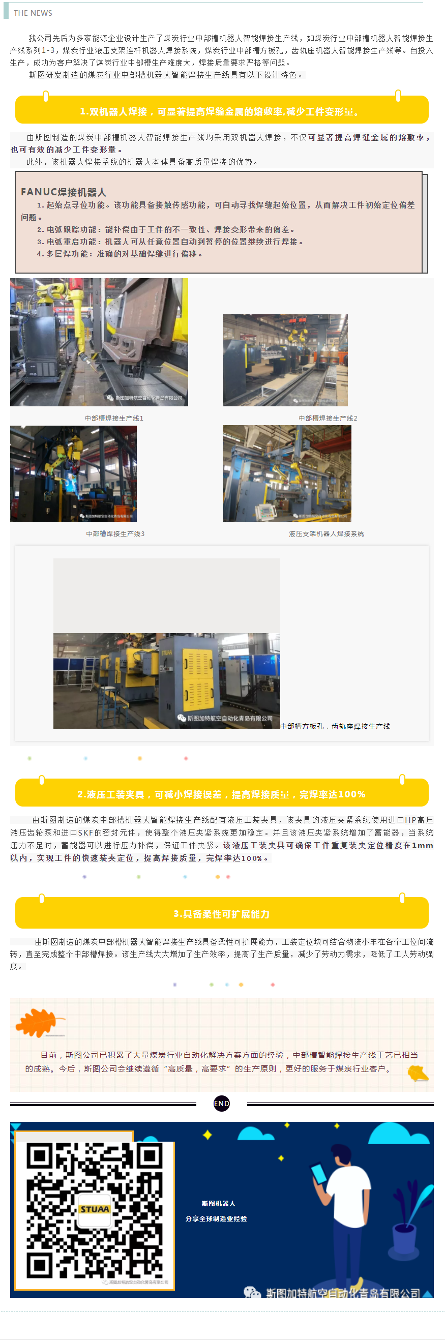 煤炭行业中部槽机器人智能焊接生产线.